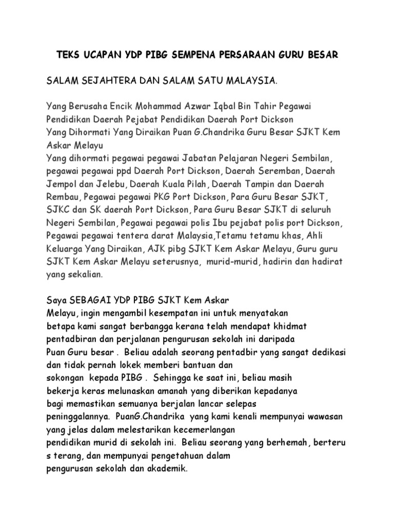 Ucapan Ydp Pibg Sempena Persaraan Guru Besar Pdf